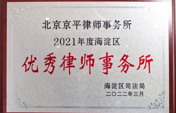 北京京平律師事務(wù)所榮獲2022年度海淀區(qū)“優(yōu)秀律師事務(wù)所”稱號(hào)